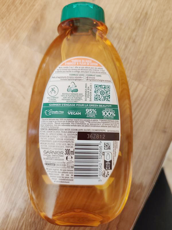 Garnier Ultra Doux Enfants 2in1 Huile d’Abricot & Fleur de Coton là dòng dầu gội trẻ em nổi tiếng của Garnier (Pháp), kết hợp dầu hạt mơ (Apricot Oil) và chiết xuất hoa bông (Cotton Flower) giúp làm sạch tóc nhẹ nhàng, đồng thời hỗ trợ gỡ rối tóc nhanh và giúp tóc dễ chải hơn sau khi gội.